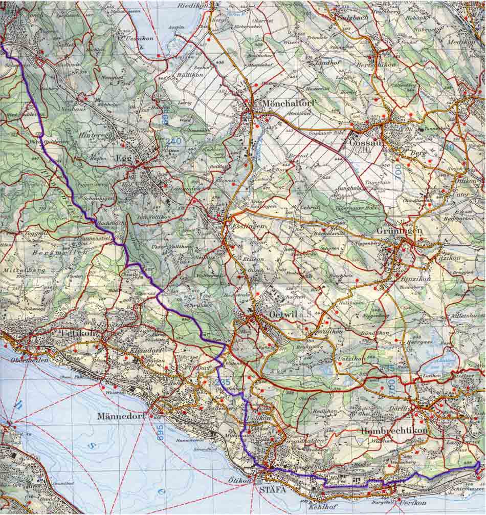entlang und dann durchs Quartier Moritzberg am Schulhaus vorbei nach Uerikon.